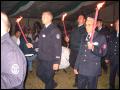 Lautstark angekündigt durch die Böller, ausgeführt von den Mitgliedern der Böllerschützengruppe des Schützen-Vereins Kriftel, zog der Spielmannszug Dornheim unter der Stabführung von Frank Lohr zu den Klängen des "Yorckschen Marsches" in das Zelt. Gefolgt von den Mitgliedern der Einsatzabteilung und der Alters- und Ehrenabteilung als Fackelträger.